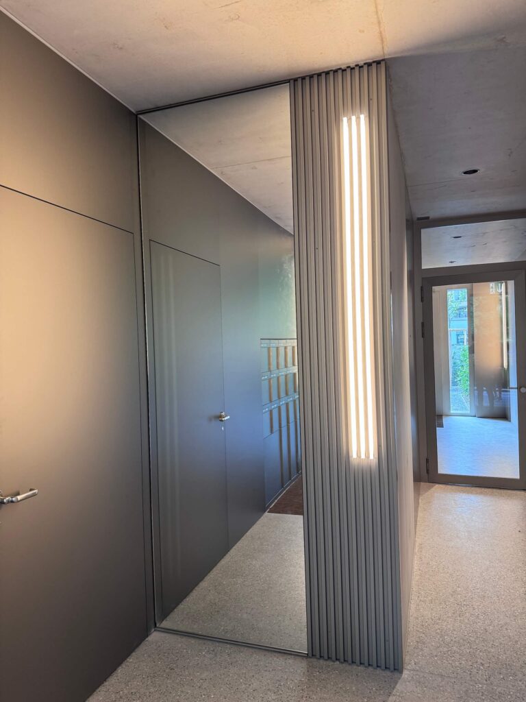Das Projekt umfasst den Neubau eines Mehrfamilienhauses mit einem Café im Erdgeschoss. Die vorgehängte, hinterlüftete Fassade besteht aus hochwertigen Kofferblechen und Designerblechen aus eloxiertem Aluminium. Im Innenbereich kommen zudem verschiedene ergänzende Blechverkleidungen zum Einsatz.